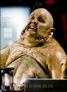 The monster itself looks something like a cross between the Slitheen (from the last series of Doctor Who) and Jabba the Hut from Star Wars, with the added unpleasantness of having its victims' faces "melded" into its skin after having "absorbed" them.