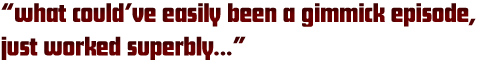 what could’ve easily been a gimmick episode, just worked superbly. I