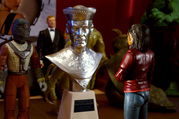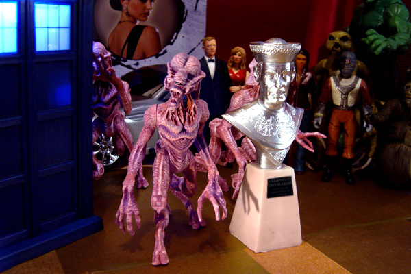 Martha hears a commotion behind her and sees a party of alien visitors being led into the room. The Lion has disappeared – scared obviously – leaving Martha to face the curator. After a few feeble, but apparently accepted, excuses, the curator moves on the talk to his party about some 21st Century films. Martha notices the Lion is here, but he’s in one of the reflective panels near to her. He explains that he can hide in the reflections, and he’d prefer to stay here for the moment. Something steals Martha’s attention. It’s a chrome bust of a man dressed as a Chinese Mandarin. It seems real, for some reason, as if the bust itself has a mind. The plinth beside it reads ‘The Celestial Toymaker’. A voice beside her says that the Celestial Toymaker was once a great and powerful man who used to trap space travellers in his games. There are stories that he was immortal, until he was defeated by one of the travellers he trapped. After that, his powers seemed to fade away and he was no more. This whole space station – celebrating entertainment across the centuries – was built according to his last wishes.